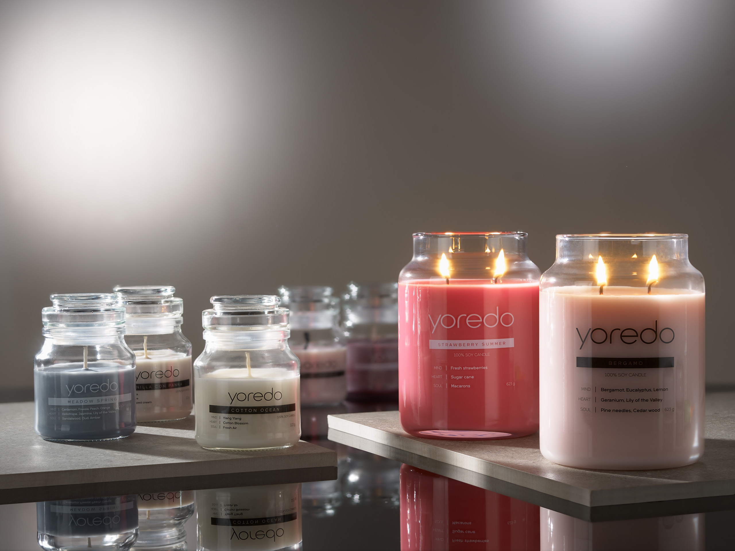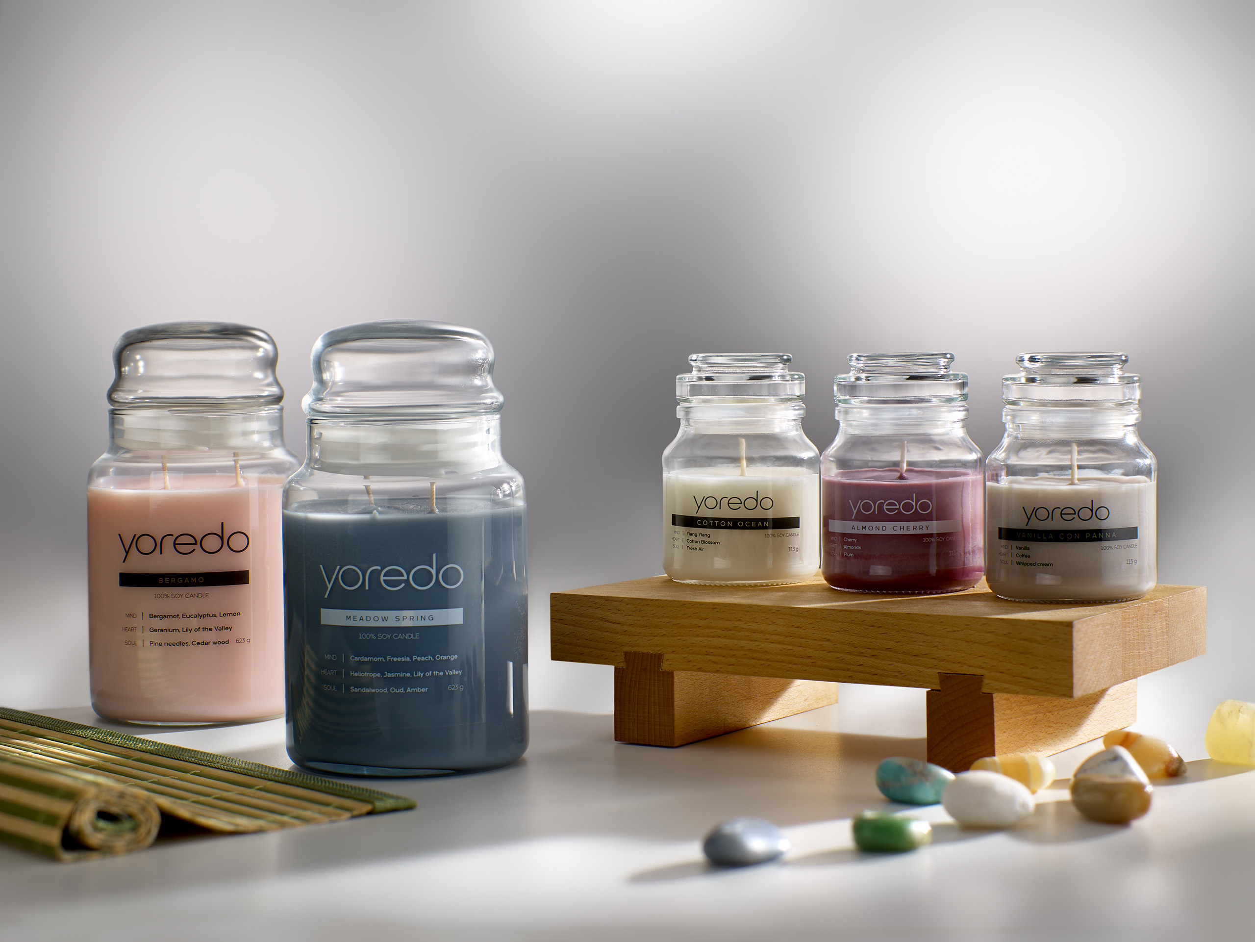 Yoredo to wyjątkowe świece sojowe, które są nie tylko piękną dekoracją, ale także zdrowym wyborem dla. Nasze świece są w 100% wykonane z wosku sojowego, co sprawia, że są przyjazne dla środowiska i zdrowia. Poszukując najlepszych rozwiązań w kwestii zapachów do salonów kosmetycznych, gabinetów masażu, SPA oraz dla miłośników trwałych zapachów i natury nasza firma sięgnęła po najbardziej dostępne naturalne składniki by stworzyć świece YOREDO. Ręcznie robiona świeca sojowa PREMIUM – zapach, który zachwyca trwałością i jakością